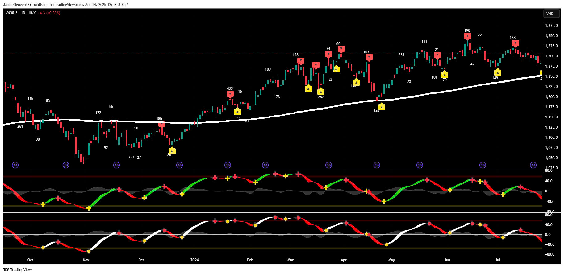 Màu thanh là màu xanh lá cây nếu xu hướng tăng và màu đỏ nếu xu hướng giảm. Nếu bạn thấy các thanh màu trắng thì có chuyển động thay đổi nấc thang
